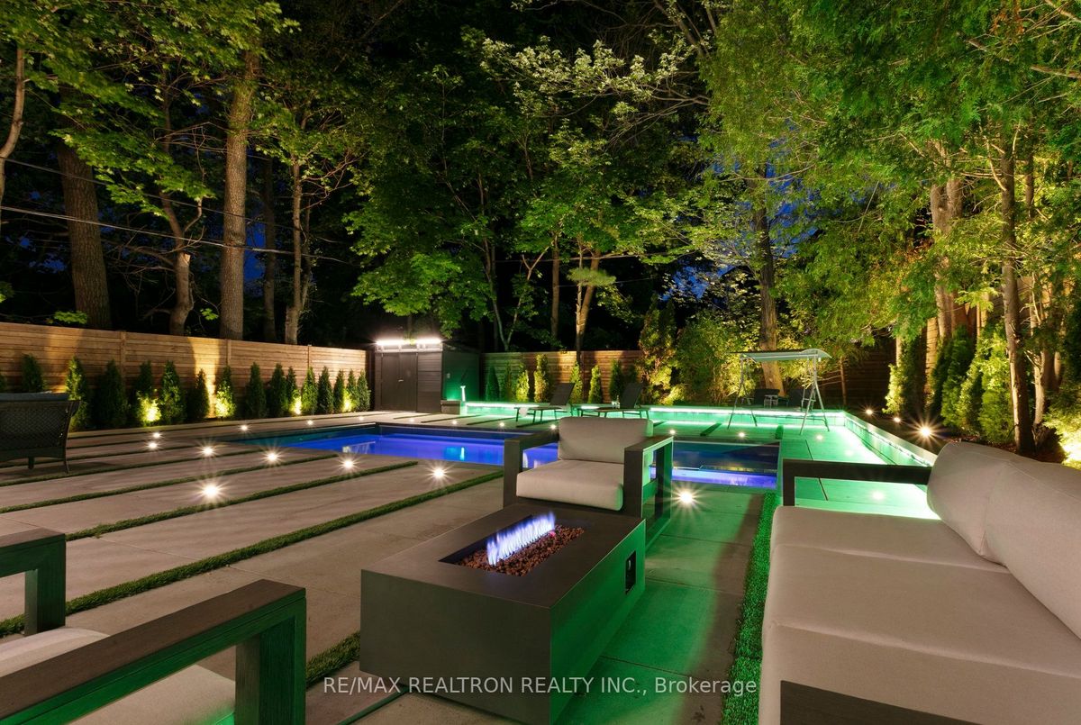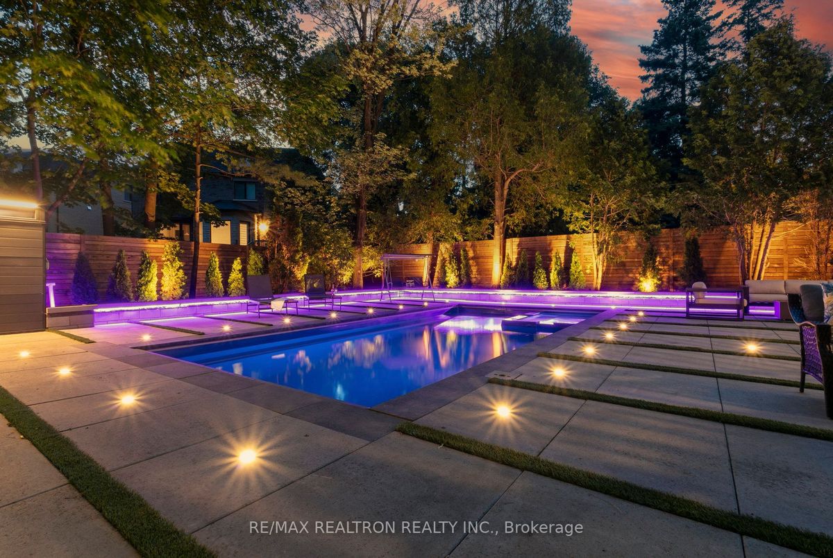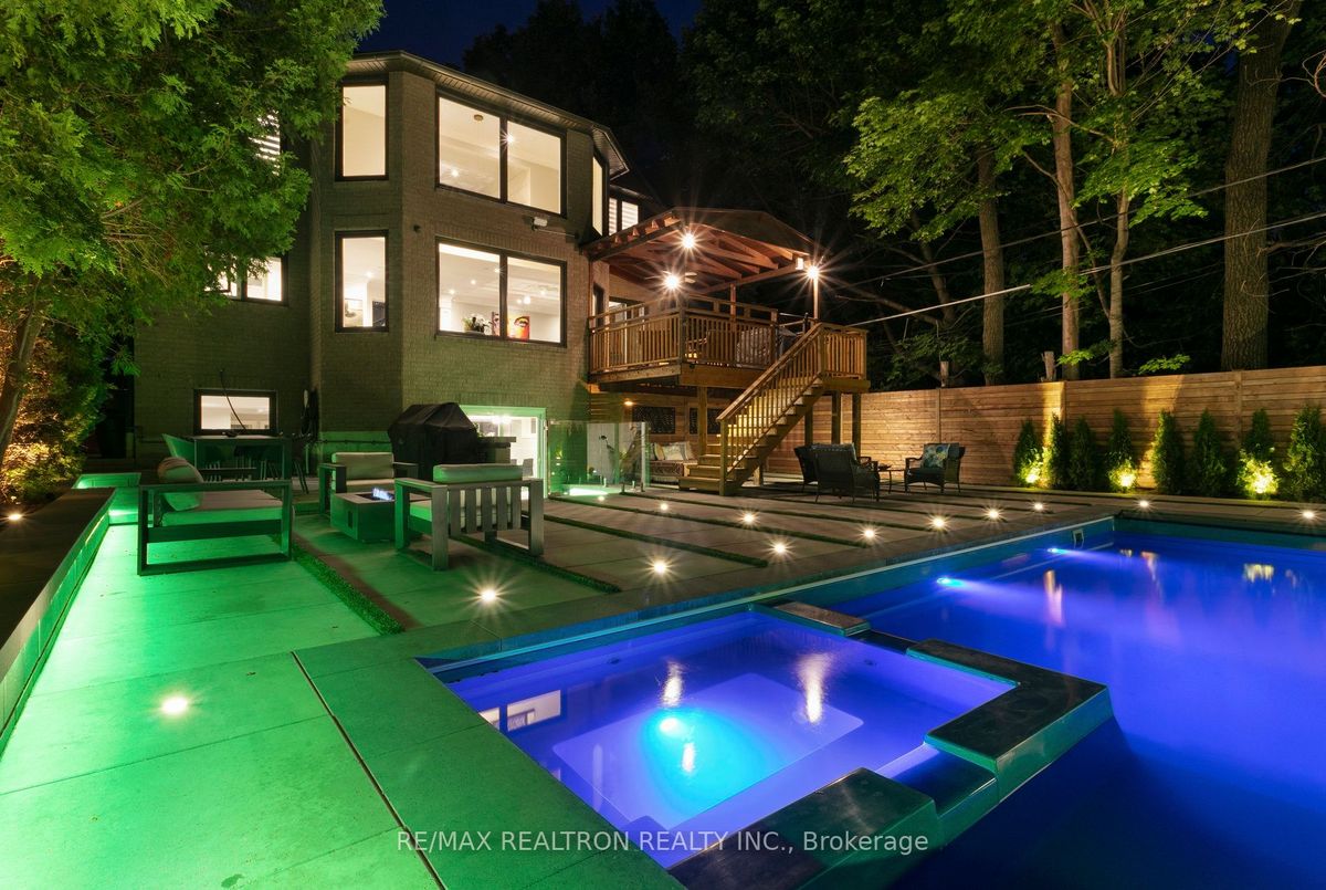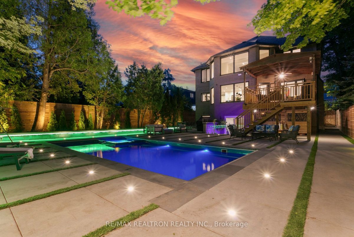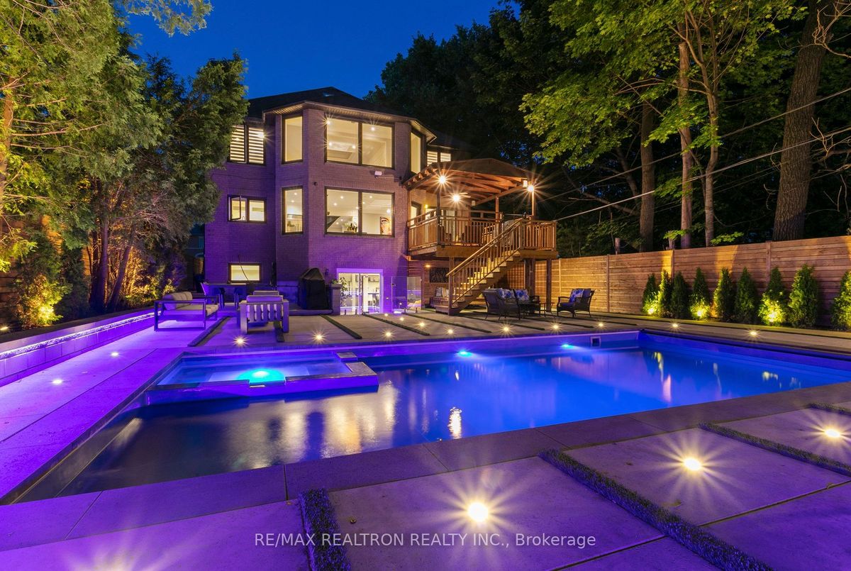 An Exquisite Lure of Today's Style, which will give you a lifetime opportunity to own a combination of Resort and residence in Toronto's most in demand neighbourhood. This Treasured Family Residence brought to life these unique attributes: A contemporary and functional design which takes full advantage of the lot size and Ravine view. A Tasteful Interior and Thoughtful Layout, Well Suited for Both Large-Scale Entertaining or More Intimate Living. This Divine Residence Offers Your Own Private Oasis with The State-Of-The-Art European Influence Garden and Pool with Ocean lighting Colour Finishing all around. Design to accommodate family living as well as be a fabulous outdoor living space for entertaining. Premium 50 * 150 Lot , Completely Enveloped By Mature Trees For The Ultimate Picturesque Setting. Host a sizeable event, huge space across all levels, Heated pool, sauna, Surrounded system