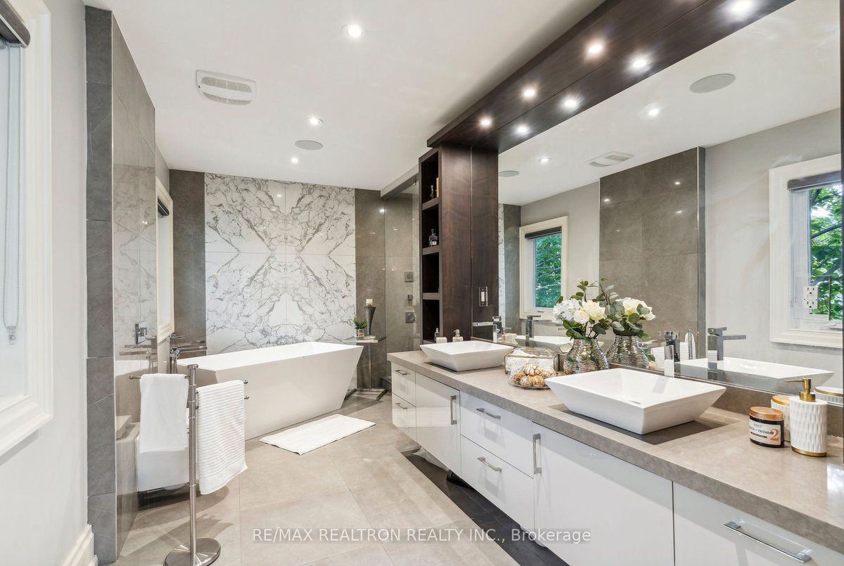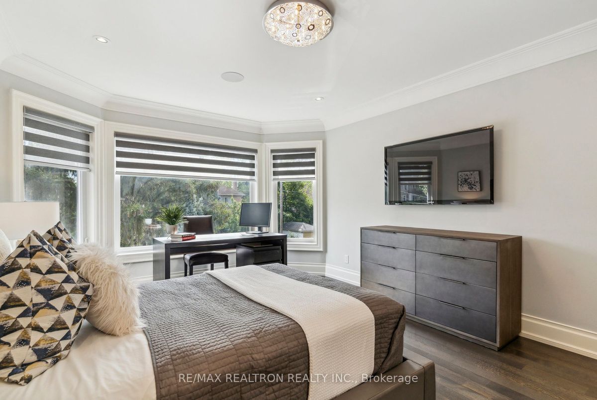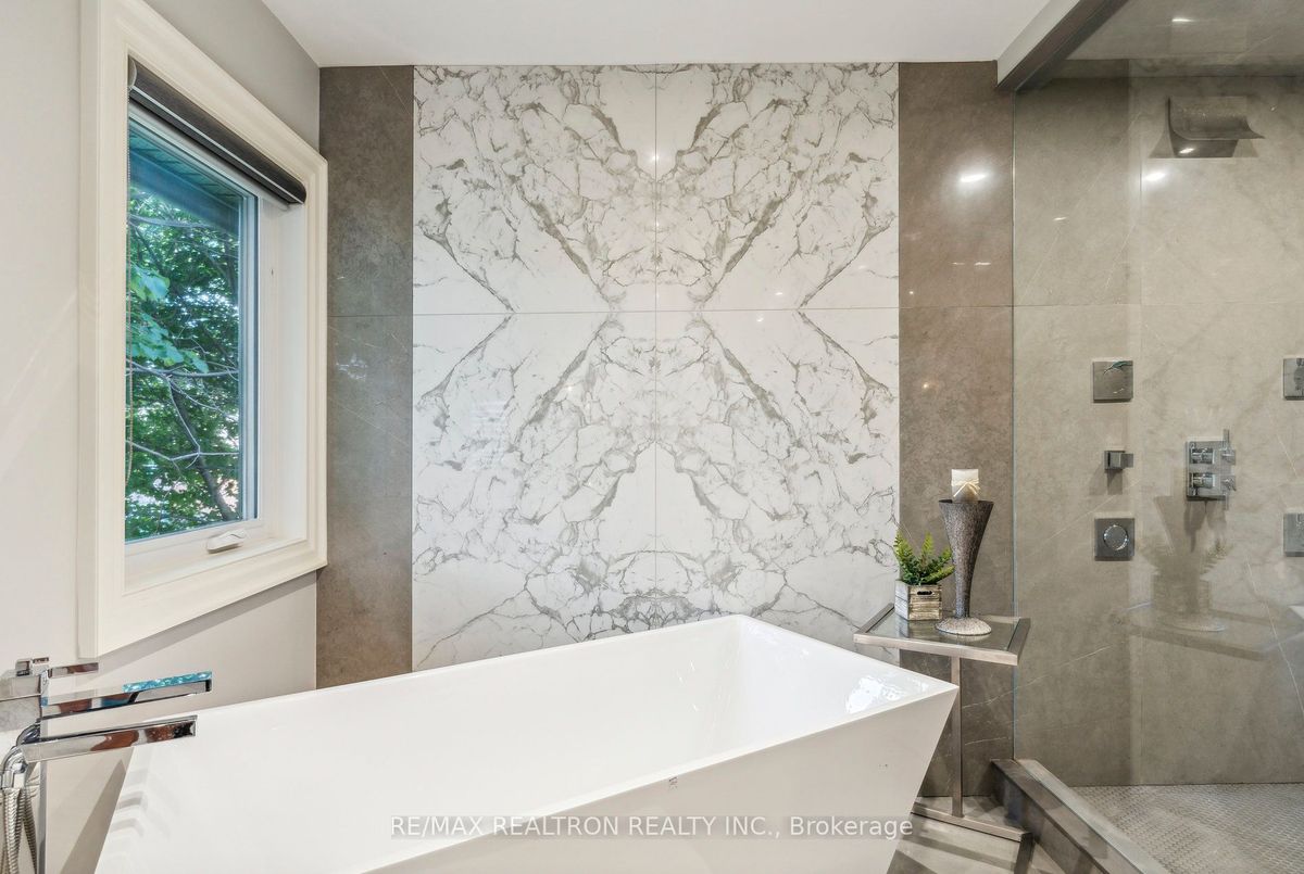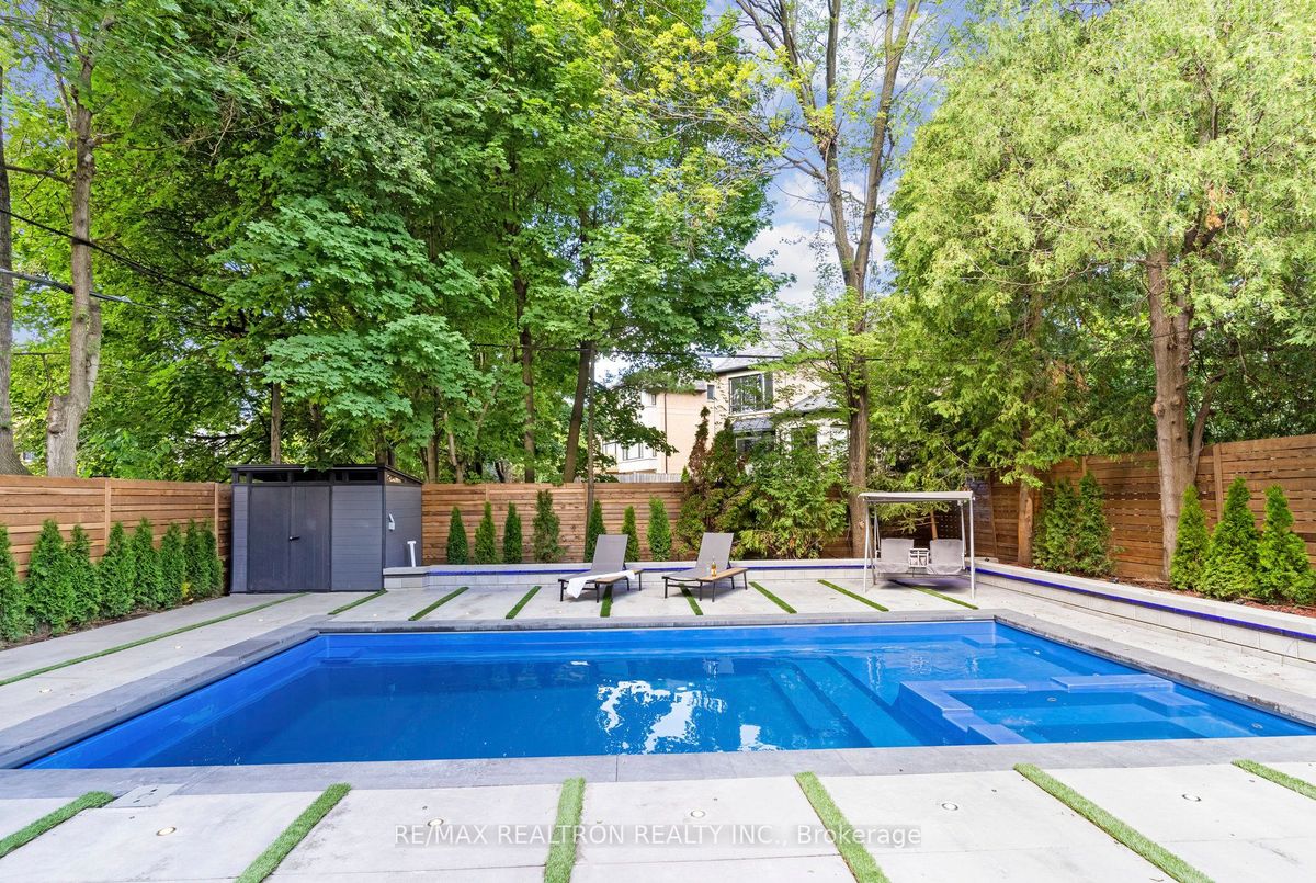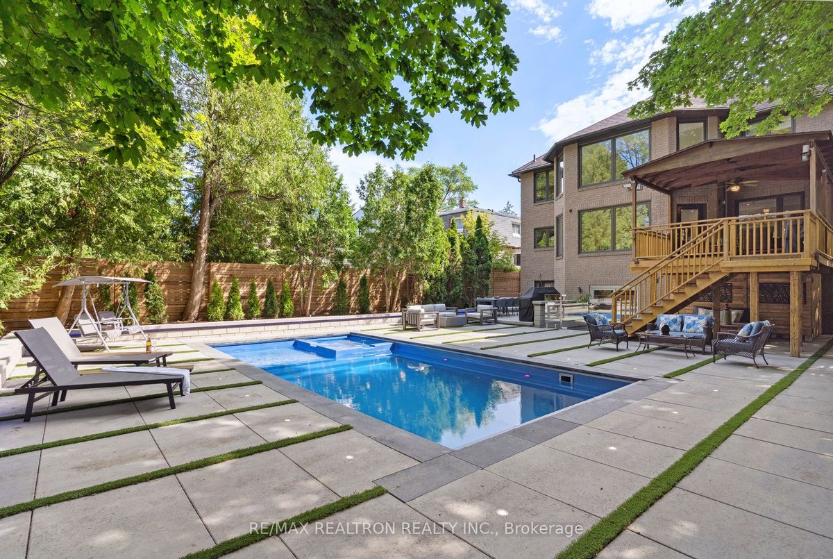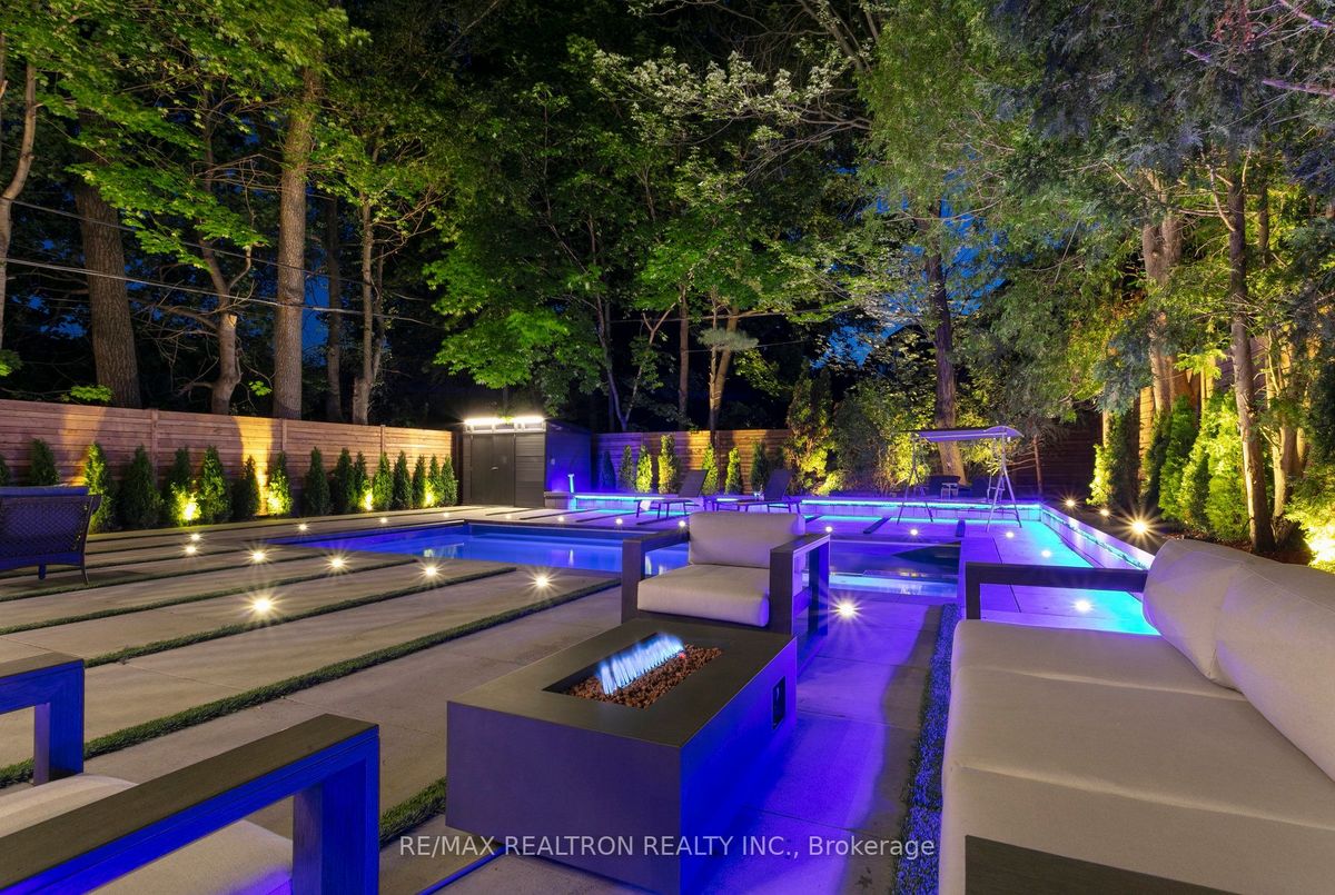 An Exquisite Lure of Today's Style, which will give you a lifetime opportunity to own a combination of Resort and residence in Toronto's most in demand neighbourhood. This Treasured Family Residence brought to life these unique attributes: A contemporary and functional design which takes full advantage of the lot size and Ravine view. A Tasteful Interior and Thoughtful Layout, Well Suited for Both Large-Scale Entertaining or More Intimate Living. This Divine Residence Offers Your Own Private Oasis with The State-Of-The-Art European Influence Garden and Pool with Ocean lighting Colour Finishing all around. Design to accommodate family living as well as be a fabulous outdoor living space for entertaining. Premium 50 * 150 Lot , Completely Enveloped By Mature Trees For The Ultimate Picturesque Setting. Host a sizeable event, huge space across all levels, Heated pool, sauna, Surrounded system