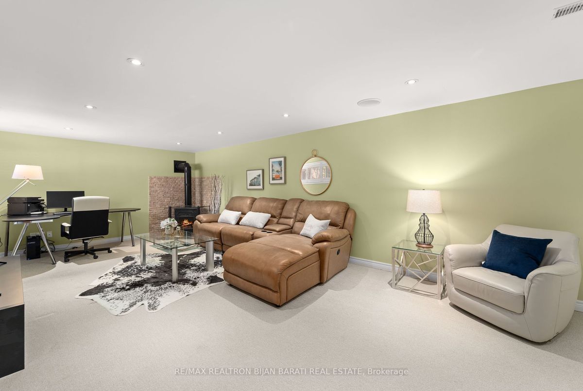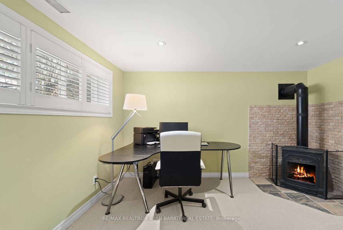 Freestanding Gas Fireplace & Remote in Basement Recreation Room/Family Rm.
