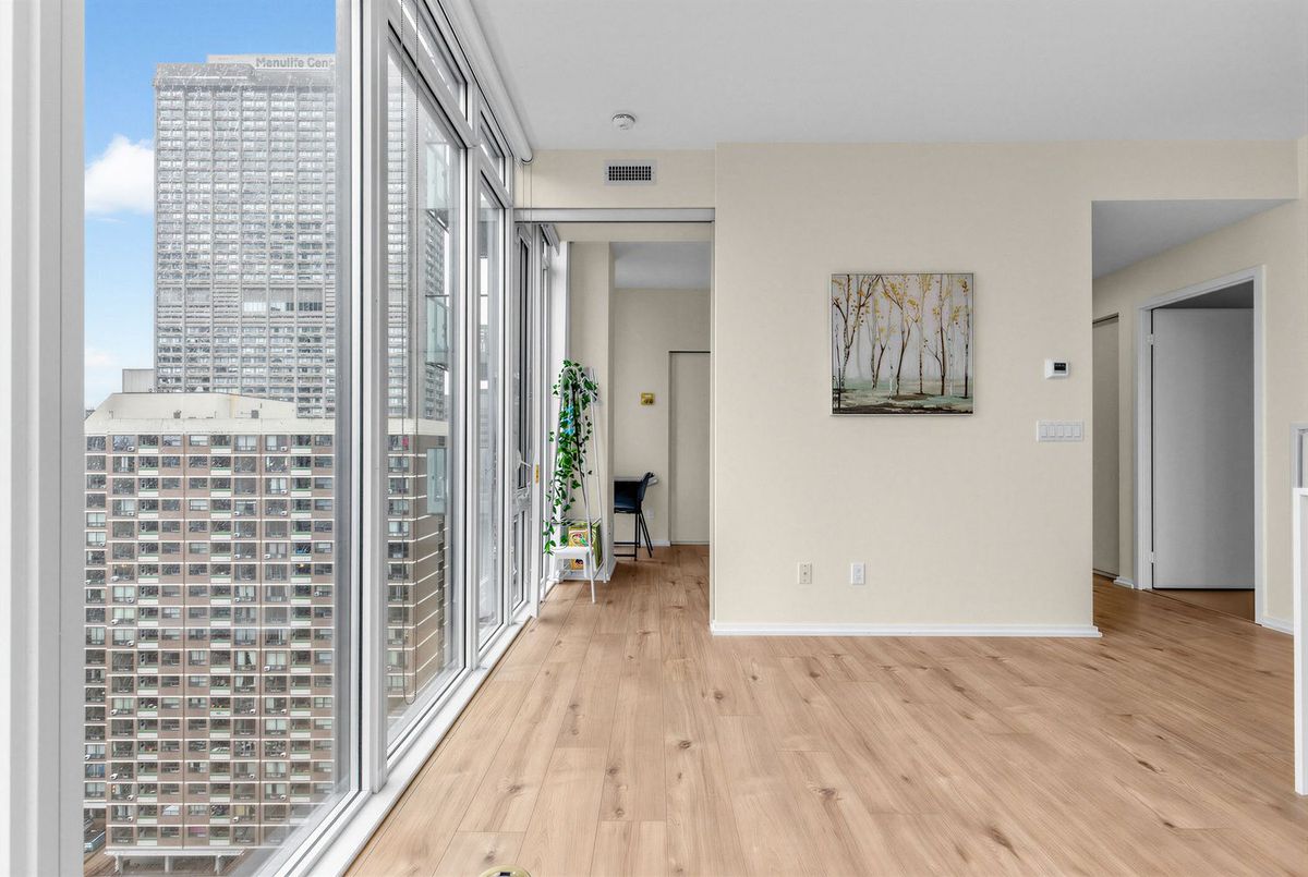 Stunning corner 2-bedroom, 2-bathroom residence in one of downtown Toronto's most prestigious locations at Yonge & Bloor. Nestled on quiet, tree-lined St. Nicholas Street, this home offers a rare blend of urban convenience and serene surroundings, just steps to Yorkville, U of T, subway lines, world-class dining, and luxury shopping. This bright and functional 2-bedroom layout features floor-to-ceiling windows, 9-ft ceiling, and breathtaking southwest panoramic city views. The open-concept living and dining space seamlessly extends to a private balcony-perfect for relaxing or entertaining. The modern kitchen is equipped with a stone countertop, built-in island, and custom cabinetry, complemented by elegant finishes throughout, including upgraded flooring and custom closet organizers. Both bedrooms are generously sized with windows, and enhanced by custom closet organizers in bedrooms and hallway, maximizing storage and everyday functionality. Well-managed luxury building with 24-hour concierge and premium amenities. An exceptional opportunity to own a stylish, move-in-ready home in the heart of downtown. Includes 1 extra large parking space and 1 locker (2.7m long x 1.05m wide x 2.65m high), locker is beside parking. Super low price, don't miss it!